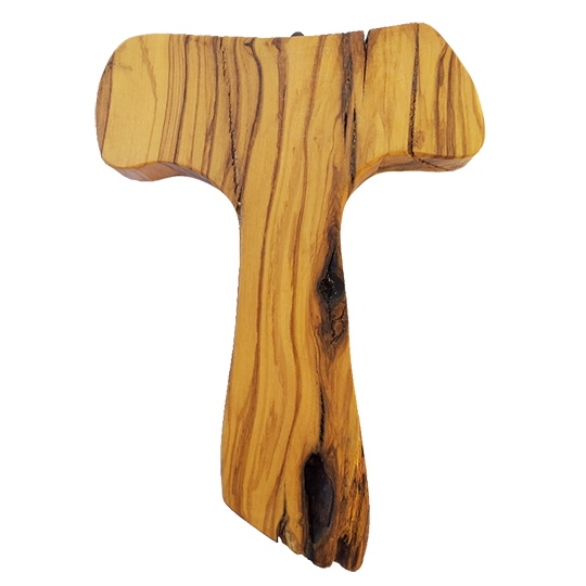 Tau da muro San Francesco di Assisi in legno di Ulivo H cm 19